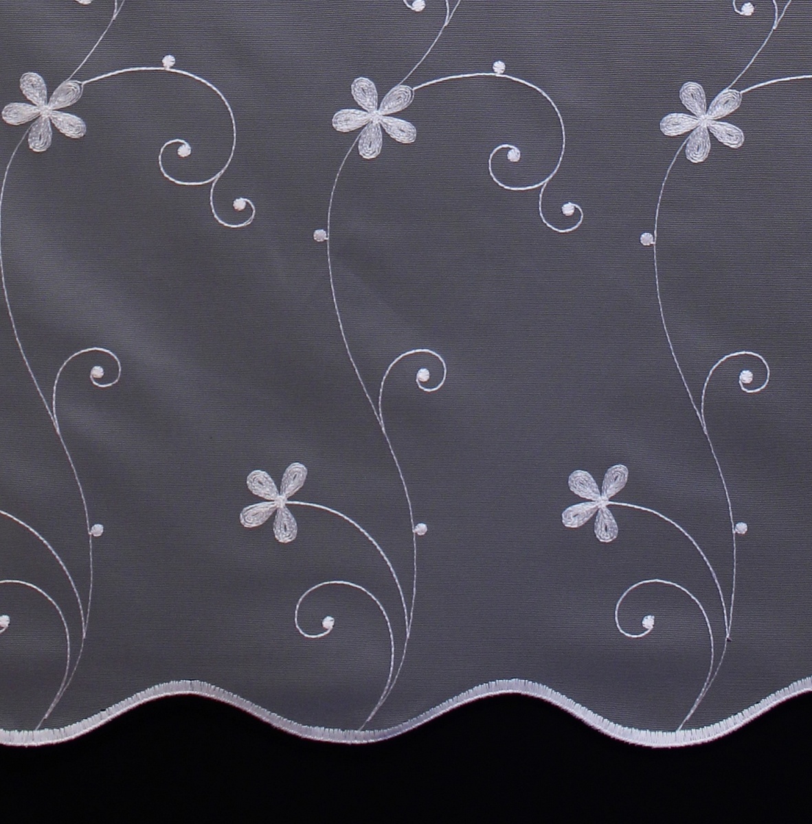 599601 Produkt: Sablé, síť Typ vzoru: Květinový Barva: Biela Dĺžka 290 cm Olůvko: Ne Materiál: 100% Polyester Údržbové symboly